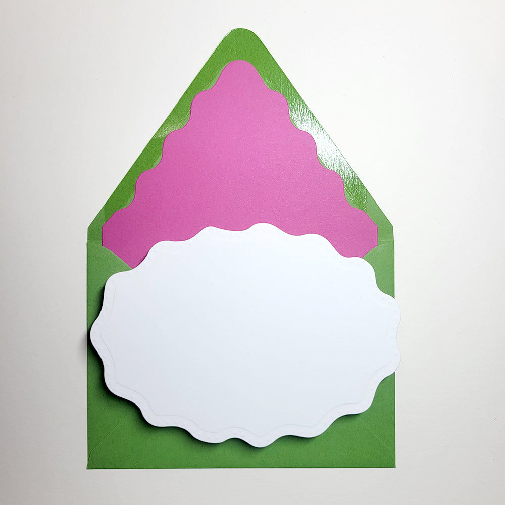 Printed and die cut, one at a time, on our vintage printing press, "Vera."